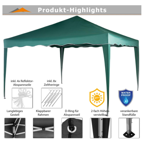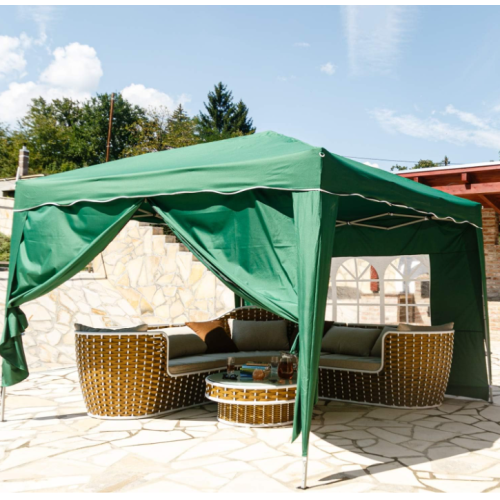 Vytvorte si dokonalé miesto na letný oddych – tento skladací stan vás ochráni pred dažďom aj ostrým slnkom. Elegantný tmavozelený dizajn sa hodí do každej záhrady a poskytne príjemný tieň aj súkromie pri každej príležitosti.