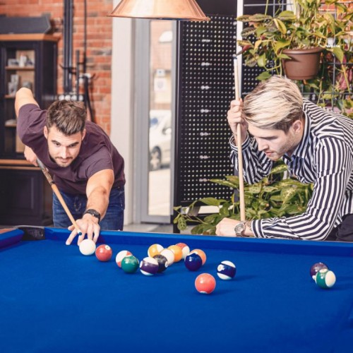 Hráte radi biliard? Užívajte si ho aj doma. Prinášame Vám biliardový stôl na domáce aj kancelárske použitie. Vďaka vratnému systému sa guličky automaticky dostanú do centrálneho zberného miesta, odkiaľ ich možno ľahko odobrať. Má výškovo nastaviteľné nohy, tým je možné stôl ideálne vyvážiť a uviesť do rovnováhy. Okrem ochrannej funkcie rohov znižuje chránič hrán aj riziko poranenia. Kostra je kompletne zmontovaná, treba iba pripevniť nohy.