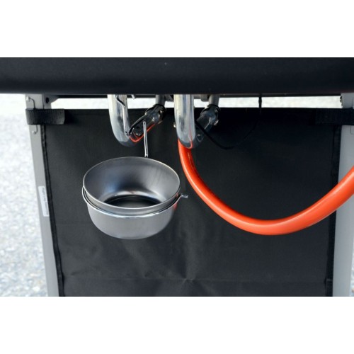 Tento plynový gril má plynovú reguláciu plameňa, všetko je teda rovnomerne tepelne upravené, tak ako má byť. Tuk stekajúci z grilovaného mäsa steká po stenách grilu do odkvapkávacej misky, ktorá je umiestnená v spodnej časti grilu. Priamo nad horákmi je umiestnený špeciálny kovový profil, ktorý zabraňuje odkvapkávaniu tuku na plameň a priamemu ohrevu mriežky plameňmi iba v jednom mieste. Praktickí užívatelia uvítajú odkladacie police, ktoré sú sklopné pre jednoduché uskladnenie. Dopravné valčeky Vám pomôžu premiestniť gril na akékoľvek miesto budete potrebovať.