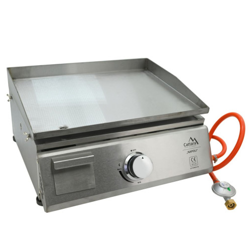 Voliteľná súčasť modulárnej záhradnej kuchyne Cattara TORINO obsahuje gril s roštom, grilovaciu dosku a pec na pizzu, všetko vyrobené z nehrdzavejúcej ocele. Gril je vybavený výsuvnou odkvapkávacou miskou na zachytávanie tuku a plynovým prívodom s hadicou a ventilom. Rošt ponúka grilovaciu plochu 40 x 31 cm, grilovacia doska z ocele má rozmery 50 x 38 cm a slúži ako teppanyaki. Doska má otvor pre zásuvku na zachytávanie tuku a šťavy. Pec na pizzu s vnútorným priestorom 44,5 x 38 cm je vybavená kordieritovým kameňom (31 x 31 cm) pre dokonalé prepečenie pizze. Gril Napoli je vhodný na použitie so systémom Cattara TORINO, spolu tak tvoria ideálnu vonkajšiu kuchyňu pre pohodlné grilovanie a spríjemnenie pobytu na záhrade.