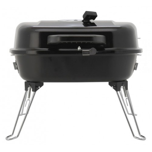 Konštrukcia je vyrobená z kvalitného smaltovaného oceľového plechu čiernej farby. Stabilitu zaisťujú štyri kovové rozkladacie nohy. Na tepelnú prípravu pochutín je gril vybavený oceľovým roštom 35 x 33 cm. Gril je vybavený regulovateľnou ventiláciou na veku. Grilovací priestor je navyše vybavený odkladacím roštom. Pre ľahké prenášanie je zložený gril zaistený páčkou a pomocou rukoväte je možné ľahko prenášať.