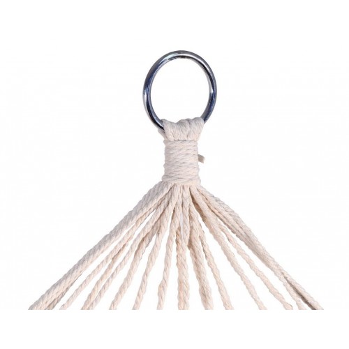 Sieť je na oboch koncoch osadená drevenými, rozpernými tyčami, ktoré zaisťujú vynikajúcu stabilitu a s ňou spojenú vysokú mieru pohodlia. Tyčami sú pretiahnuté 5 mm povrazy z mäkkého a pružného vlákna a konce povrazov sú zapletené do oceľových krúžkov určených na zavesenie.