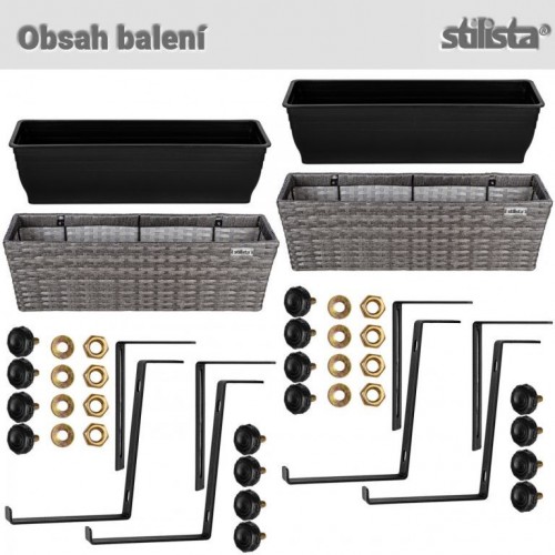 Syntetické vlákno polyratan zaujme svojimi vynikajúcimi vlastnosťami. Je odolný voči poveternostným vplyvom, UV žiareniu, odpudzuje nečistoty a ľahko sa čistí. Vďaka vyberateľným plastovým vložkám je sadenie rastlín hračka. Súčasťou dodávky je nastaviteľný kovový záves pre upevnenie kvetináčov na balkón alebo zábradlie.