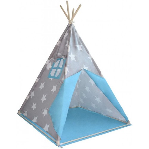 Detský stan teepee, sivo/modrý, s príslušenstvom
