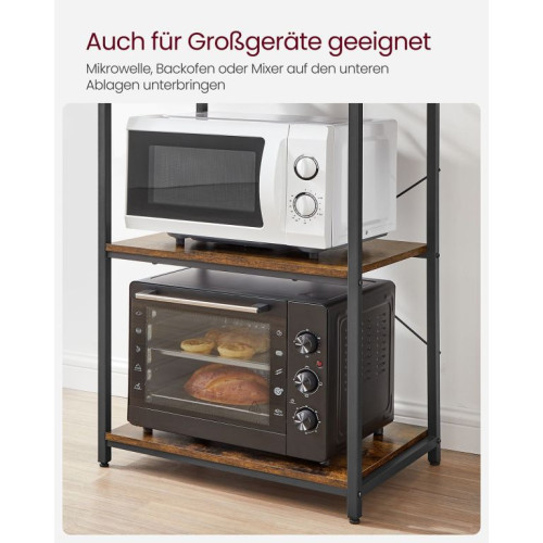 Kombinácia ocele a drevotriesky zaručuje pevnosť a odolnosť. Nastaviteľná výška spodnej police umožňuje jednoduché uloženie aj väčších spotrebičov. Polica je stabilná, ľahko sa montuje a vďaka ochrane proti prevráteniu je bezpečná aj v domácnostiach s deťmi.