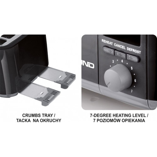 Hriankovač pre opečenie 4 krajcov chleba. Pre zabezpečenie preferovaného stupňa opečenia je k dispozícii sedem nastaviteľných výkonostných stupňov. Súčasťou hriankovača sú dve misky na omrvinky, uľahčujúce čistenie. Napájanie pomocou 230V zaistí 0,75 m dlhý kábel, ktorý možno uschovať vo vnútri hriankovača.