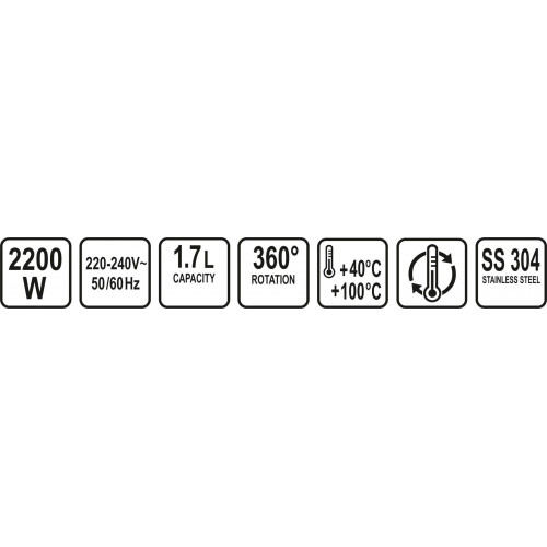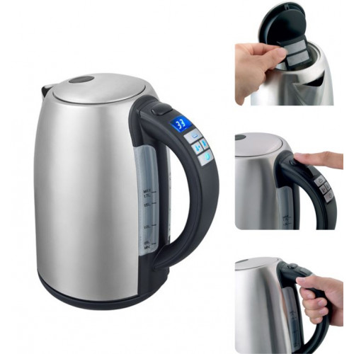 Praktická rýchlovarná kanvica z nerezovej ocele s príkon 1850 - 2200 W zaistí rýchle ohriatie 1,7 l vody na prednastavenú teplotu, ktorú možno ľahko navoliť pomocou ovládacieho panelu na rukoväti. Zariadenie je napájané pomocou 70 cm dlhého kábla na 230V.