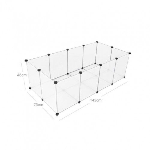 Tento praktický a vzdušný výbeh vytvára ideálny priestor pre morčatá, králiky, škrečky, ježkov a iné malé domáce zvieratá. Priehľadné plastové panely vám umožňujú sledovať, čo sa deje vo vnútri, a zároveň poskytujú vašim domácim zvieratám pocit otvoreného priestoru. Vďaka jednoduchému spojeniu pomocou viacuholníkových spojok ho môžete zostaviť za pár minút bez použitia zložitých nástrojov.