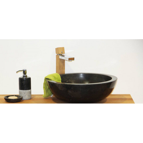 Designové umývadlo Gemma na dosku je vyrobené z jedného kusu kameňa bez lepenia. Toto luxusné kamenné umývadlo je okrúhle a ručne leštené, preto je hladké a krásne sa leskne. Hrúbka steny nie je nikdy menšia ako 3 cm. Umývadlo je tak pevné a takmer nerozbitné. Odtokové otvory sú v štandardnej európskej veľkosti.
