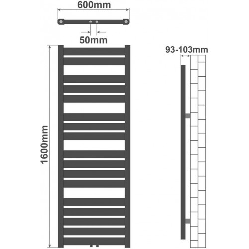 AQUAMARIN vertikál. kúpeľňový radiátor 160 x 60 cm, antracit