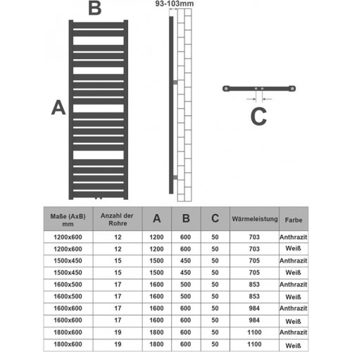• 1 x kúpeľňový radiátor vrátane upevňovacieho materiálu
