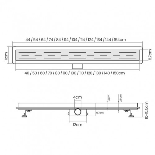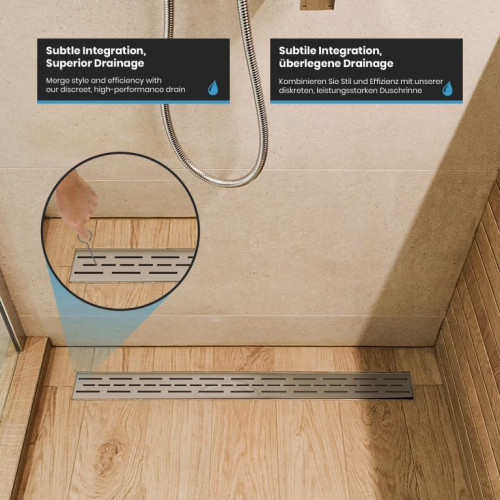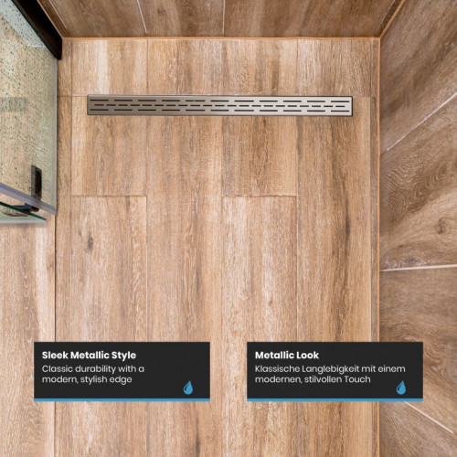 Premeňte svoju kúpeľňu na oázu štýlu a inovácií vďaka našim vynikajúcim lineárnym sprchovacím odtokom. Nerezová oceľ najvyššej kvality, umne kartáčovaná, v kombinácii s pieskovaným hlavným telom. Dizajn vašej kúpeľne si zaslúži niečo výnimočné, preto sú naše sprchové odtoky navrhnuté tak, aby nielen zaujali, ale aj inšpirovali svojou odolnosťou. Vďaka zapustenému povrchovému materiálu vám zaručujeme výrobok, ktorý obstojí v skúške času. Inštalácia je rýchla, nekomplikovaná a bez nutnosti použitia batérií. Mysleli sme na všetko, aby ste sa mohli bez obáv sústrediť na to podstatné. Vylepšite tvar a funkciu svojho sprchového kúta pomocou nášho elegantného a odolného lineárneho sprchového odtoku, ktorý dodá vašej každodennej rutine sofistikovanosť.