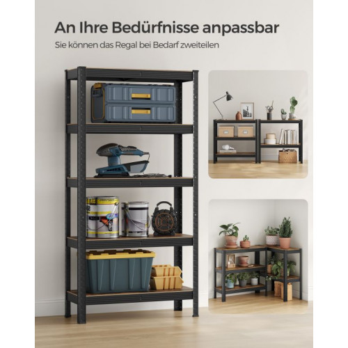 Objavte spojenie pevnosti a štýlu v jednom. Kovový regál SONGMICS s rustikálne hnedými policami a čiernym rámom ponúka nosnosť až 650 kg a nastaviteľnú výšku jednotlivých políc. Vďaka univerzálnemu dizajnu sa hodí do obývačky, kuchyne aj garáže a prinesie poriadok aj eleganciu do každého priestoru.