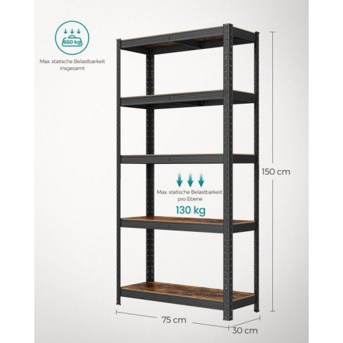 SONGMICS Regálová jednotka 150 × 75 × 30 cm, hnedo-čierna