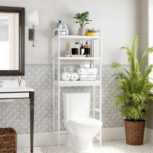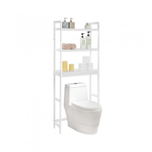 Vnesiete sviežosť a poriadok do vašej kúpeľne. Táto trojstupňová bambusová polička v elegantnej bielej farbe ponúka dostatok priestoru pre všetky vaše toaletné potreby, bez toho aby zaberala príliš veľa miesta. Nastaviteľné police sa prispôsobia vašim potrebám, či už ukladáte malé kozmetické výrobky alebo vysoké fľaše šampónov.