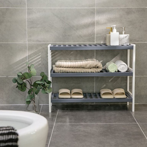 Vnesiete do svojho domova harmóniu a poriadok s touto štýlovou botníkovou poličkou z prírodného bambusu. Jej čistý dizajn a kombinácia bielej a šedej farby doplnia každý interiér, zatiaľ čo tri priestranné police poskytujú dostatok miesta pre vaše topánky a drobné predmety. Vychutnajte si jednoduchosť a praktickosť vo vašom každodennom živote.