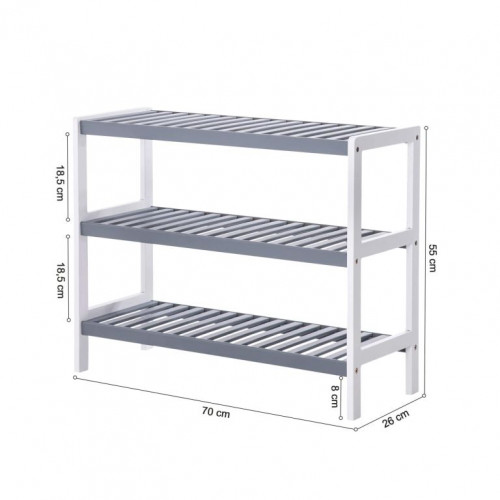 Bambusová botník, 3 police, biela/sivá, 70x26x55 cm