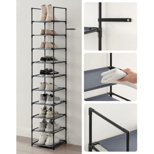 Regál na topánky SONGMICS 10 políc, sivý, 33×33×173 cm