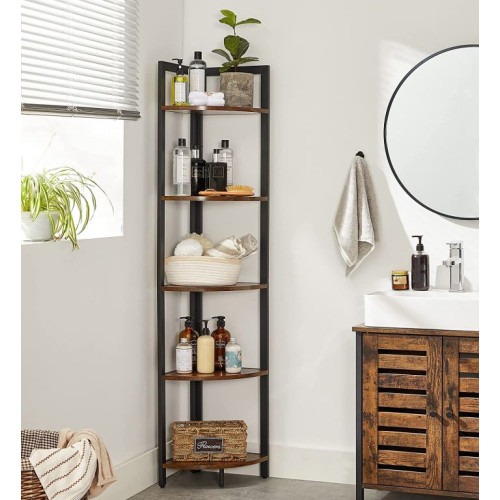 Vytvorte útulný kútik pre svoje obľúbené dekorácie, knihy alebo kvety. Táto priemyselná rohová polica premení nevyužitý kútik na originálny priestor, ktorý odráža vašu osobnosť a vkus. S piatimi policami, ktoré sú od seba dostatočne vzdialené, môžete vystaviť všetko, čo máte radi.