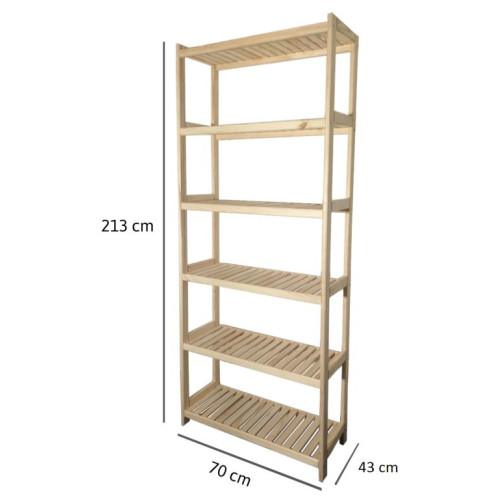Drevený regál borovica 70x213x43 cm, 6 políc, nosnosť 25 kg