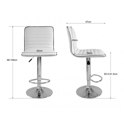 Moderná a štýlová barová stolička s elegantným PU sedákom je ideálnou voľbou pre vašu domácnosť, bar alebo kuchynský ostrovček. Vďaka polstrovanému sedáku poskytuje pohodlie aj pri dlhšom sedení. Nastaviteľná výška pomocou plynového piestu umožňuje ľahké prispôsobenie výšky stoličky podľa potreby. Stabilná chrómová základňa s opierkou na nohy zaisťuje dlhú životnosť a maximálny komfort. Táto stolička vyniká svojim moderným dizajnom a stane sa štýlovým doplnkom akéhokoľvek interiéru.