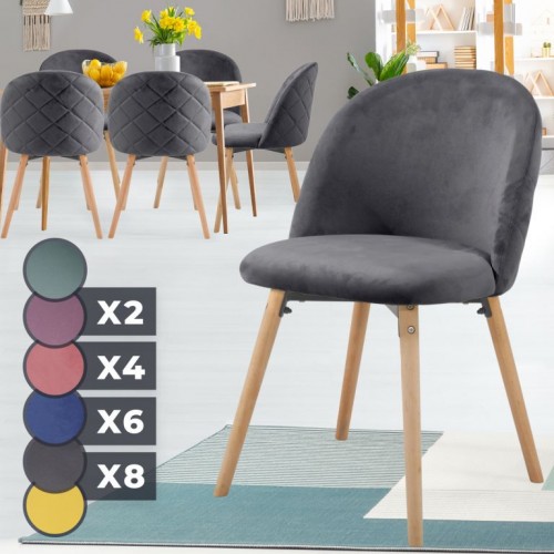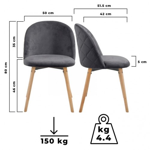 Nábytok v škandinávskom štýle je už nejakú dobu trendom ako v domácnostiach, tak aj v komerčných zariadeniach. Tieto stoličky v modernom dizajne majú nohy z bukového dreva, ktoré zaistia skvelú stabilitu a príjemný zamatový poťah pre to správne posedenie.
