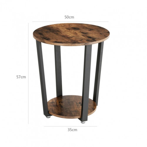 Okrúhly stolík ALINRU prináša do vášho domova nádych originality a elegancie. Jeho rustikálny povrch v kombinácii s čiernymi oceľovými nohami vytvorí útulnú atmosféru v obývačke, spálni aj pracovne. Dve úrovne úložného priestoru ponúkajú miesto na dekorácie, knihy aj kvety a stane sa neprehliadnuteľným doplnkom vášho interiéru.