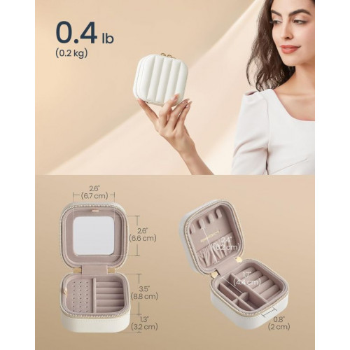 Cestujte štýlovo a majte všetko prehľadne usporiadané. Táto kompaktná šperkovnica s jemným prešívaním a lesklými kovovými doplnkami sa stane vaším ideálnym spoločníkom na cestách aj na každodenné použitie. Vďaka elegantnému dizajnu a integrovanému zrkadlu môžete svoje obľúbené doplnky usporiadať elegantne a prehľadne.