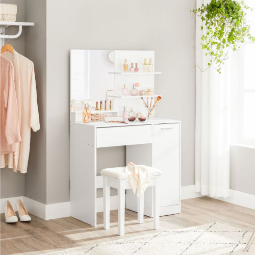 Vytvorte si svoj vlastný kútik krásy a začnite každý deň v dobrej nálade. Tento biely toaletný stolík ponúka dostatok priestoru pre všetky vaše kozmetické potreby a veľké zrkadlo vám uľahčí prípravu na nadchádzajúci deň.