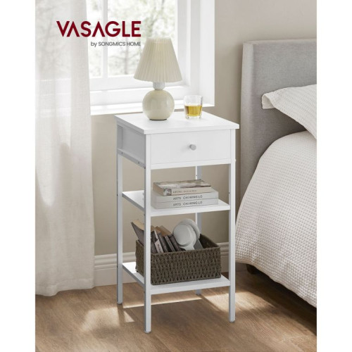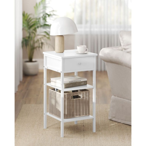 Biely nočný stolík s policami a zásuvkou, 35x35x70 cm