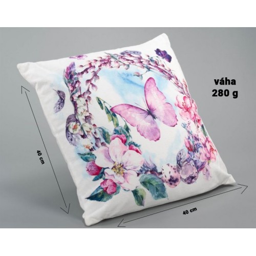Dekoračný vankúšik Motýľ a kvety, 40 x 40 cm