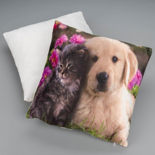 Dekoračný vankúš s LED osvetlením Mačka a pes - 38 x 38 cm