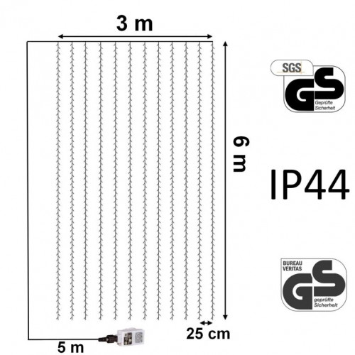 - 1 x vianočné osvetlenie - svetelný záves - 3 x 6 m farebná 600 LED
