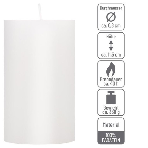 Biela parafínová sviečka v rustikálnom štýle, 11,5 cm, 40 h