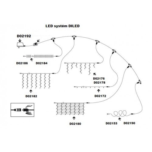 Řetěz je vhodný jak pro venkovní, tak i pro vnitřní použití. Na jeden napájecí adaptér můžete napojit až 2 000 diod v rámci diLED systému.