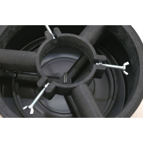 Robustný stojan na umiestnenie vianočného stromčeka s výškou do 1,5 m. Kmeň stromčeka (do priemeru 10 cm) je možné uchytiť v spodnej časti pomocou vrutu. Zaistenie stromčeka, zvýšenie stability a možnosť doladenia sklonu je možné vykonať pomocou jestiaceho mechanizmu s tromi skrutkami vo vrchnej časti stojana. Telo stojana je zhotovené z odolného materiálu, ktorý je možné pre vyššiu stabilitu naplniť vodou, pieskom, alebo zeminou.