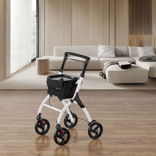 Ľahký a pevný hliníkový rám je navrhnutý tak, aby sa dal ľahko zložiť a manipulovať s ním. Výškovo nastaviteľná rukoväť a otočné predné kolesá zaručujú maximálny komfort aj v menších bytoch. Bezpečnostná brzda na zadných kolesách umožňuje rýchle zastavenie a stabilitu.