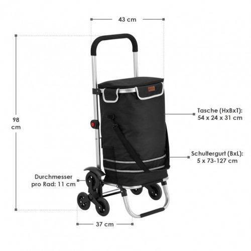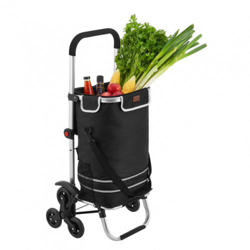 Nákupný vozík 3 v 1 na schody - objem 56 l, čierny