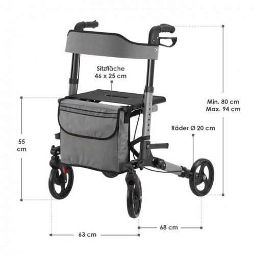 Stabilná hliníková konštrukcia zaručuje nosnosť až 130 kg, pričom váži len 8 kg. Skladacia konštrukcia umožňuje jednoduché zloženie do kompaktnej veľkosti, takže sa zmestí do kufra auta alebo aj do menšieho bytu. Výškovo nastaviteľné rukoväte, odolné kolieska a bezpečnostné brzdy zaručujú maximálnu bezpečnosť a pohodlie pri používaní doma alebo vonku.