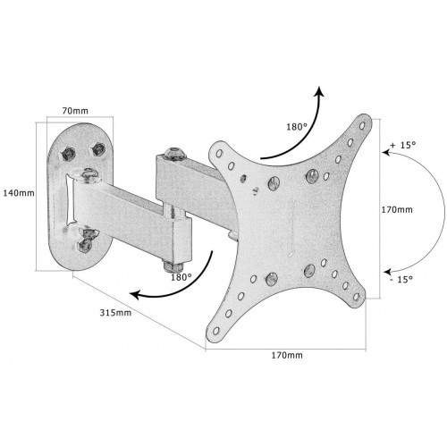 Tento nástenný držiak je vhodný pre 30-palcové LCD monitory a televízory. Doporučené zaťaženie podľa testovania TÜV SÜD GS je 12 kg. Nástenný držiak je dodávaný s vodováhou, aby bolo zaistené presné zarovnanie. V sade nájdete všetko potrebné príslušenstvo - skrutky, podložky a pod. Kladieme veľký dôraz na bezpečnosť, preto sú použité kvalitné skrutky triedy 8.8, ktoré sú súčasťou balenia.
