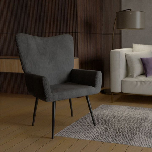 Pohodlné manžetové kreslo z manšestru, sivé