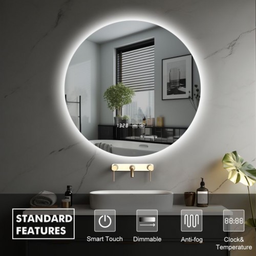 IREDA Kúpeľňové zrkadlo s LED osvetlením, okrúhle, 70 cm