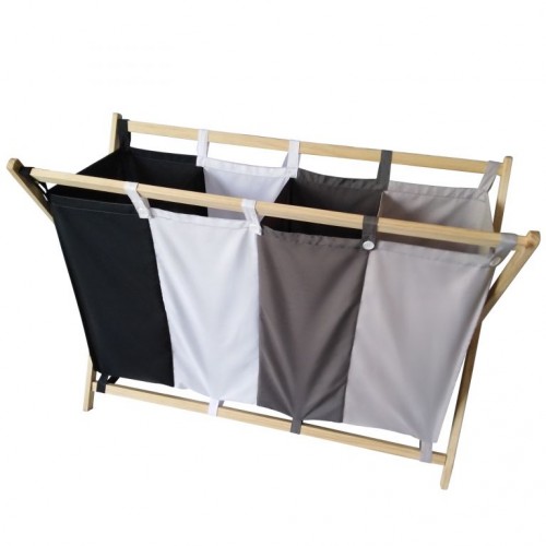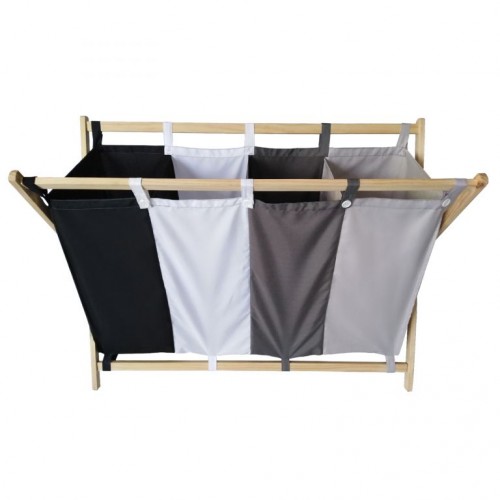 Konečne môžete vniesť poriadok do kúpeľne alebo práčovne. Vrecia na bielizeň sú vyrobené z vysoko kvalitného a odolného polyesteru a jednoducho sa zavesujú na pevný drevený rám. Veľmi praktický pomocník, ktorý Vám uľahčí pranie bielizne. Má 4 praktické vrecká na bielizeň v 4 farbách.
