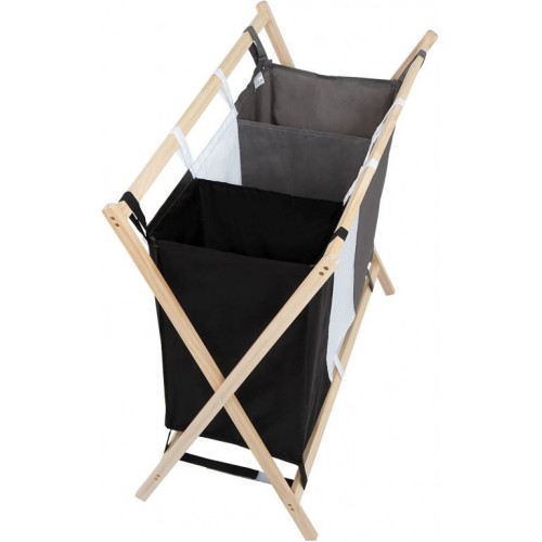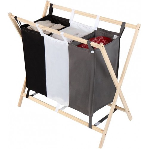 Tento praktický triedič má 3 vrecia na bielizeň. Tie Vám umožnia triediť Vaše biele, čierne a farebné prádlo už pri vhadzovaní do koša - ušetríte tak veľa času. Takto môžete konečne priniesť poriadok do svojej kúpeľne alebo práčovne. Vrecia na bielizeň sú vyrobené z vysoko kvalitného a odolného polyesteru a sú jednoducho zavesené na robustnom drevenom ráme. Veľmi praktický pomocník, ktorý Vám zjednoduší pranie.