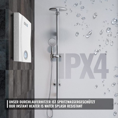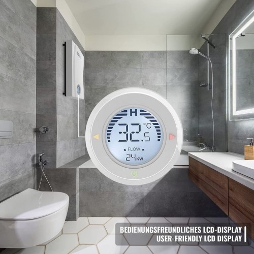Náš prietokový ohrievač má zabudovanú funkciu úspory energie – čím nižšia je potrebná teplota, tým menej energie spotrebuje a naopak, napr. 60 °C spotrebuje 24 kW. Náš ohrievač vody má rôzne ochranné funkcie, ktoré zabraňujú problémom ako prehriatiu, suchému kúreniu a pretlaku. Odteraz si nemusíte robiť starosti, či sa vyskytne problém – náš ohrievač vody je vybavený chybovým alarmom, ktorý Vás informuje, keď je potrebná oprava. Produkt musí byť inštalovaný a uvedený do prevádzky odborníkom. Odporúča sa inštalovať prietokový ohrievač vody v interiéroch a iba na miesta, kde voda ľahko nemrzne.