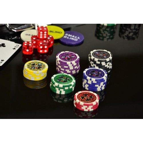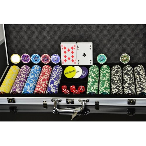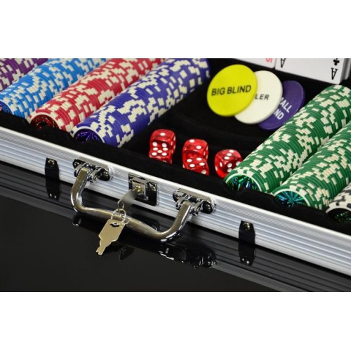 Pokerový set obsahuje 500 kusov žetónov s kovovým jadrom a hmotnosťou 11 g. Žetóny majú laserové nálepky s hodnotou žetóna, každá hodnota je odlíšená farbou. Začnite si užívať pokerové večery doma s priateľmi. Tento kufor je tiež ideálnym darčekom pre každého milovníka pokeru.