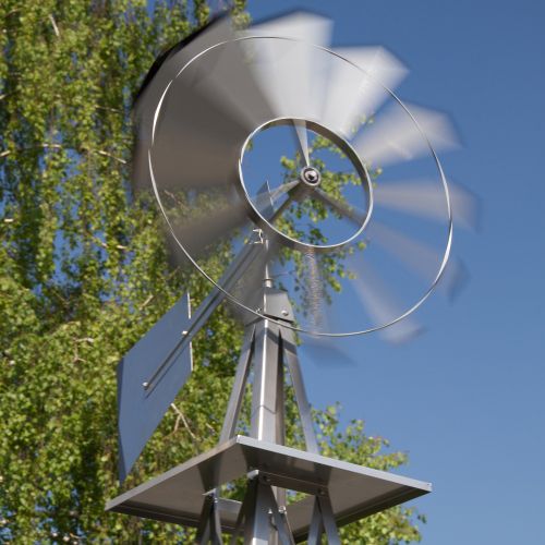 Obrovský veterný mlyn v americkom štýle! Je vernou kópiou amerických veterných mlynov, ktoré môžeme ešte dnes nájsť na mnohých amerických statkoch. Disponuje guličkovým ložiskom, ktoré mu prepožičiava ľahkú a tichú prevádzku.