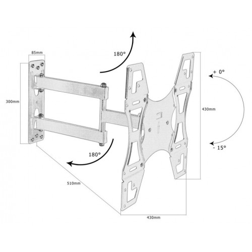 Tento držák je díky svým rozměrům a nosnosti opravdu univerzální. Je možné ho použít pro LCD monitory a televizory o úhlpříčce až 65". Doporučené zatížení podle testování TÜV SÜD GS je 35 kg, bezpečné testování proběhlo při zátěži držáku až do 105 kg. Díky výkyvným ramenům můžete oddálit televizor od stěny až na 40 cm.