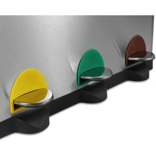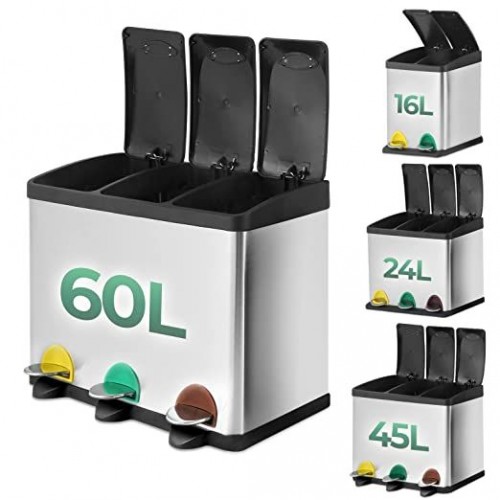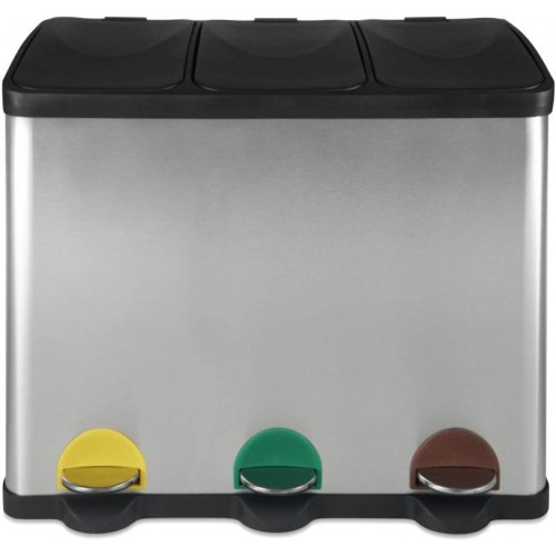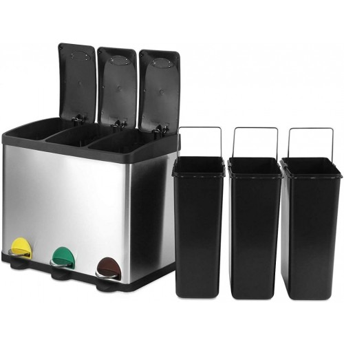 Tento pedálový odpadkový kôš má oddelené vnútorné vedierka, ktoré sú ideálne na triedenie rôznych druhov odpadu alebo recykláciu. Funkčnosť spolu s módnym dizajnom robí tento odpadkový kôš ideálnym na použitie v kuchyni, ale možno ho považovať aj za praktický doplnok do kúpeľne, spálne alebo kancelárskych priestorov. Tesne uzavreté veko nášho triediča odpadu sa otvára pomocou farebných pedálov a umožňuje ľahký prístup k vybratiu a vyprázdneniu odpadkov z vnútorných vedier. Odpadkový kôš má stabilnú protišmykovú základňu, ktorá chráni povrch podlahy, a tiež praktické madlo na zadnej strane, ktoré je vhodné na ľahký transport celého predmetu.
