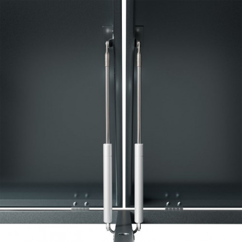 Konštrukcia z pevnej pozinkovanej ocele odoláva dažďu, snehu aj UV žiareniu, a navyše sa ľahko čistí. Horné veko s plynovou vzperou zaručuje pohodlné otváranie bez námahy, zatiaľ čo predné zamykateľné dvere chránia popolnice pred nechceným prístupom. V prípade potreby je možné prístrešok rozšíriť o ďalší modul.